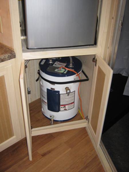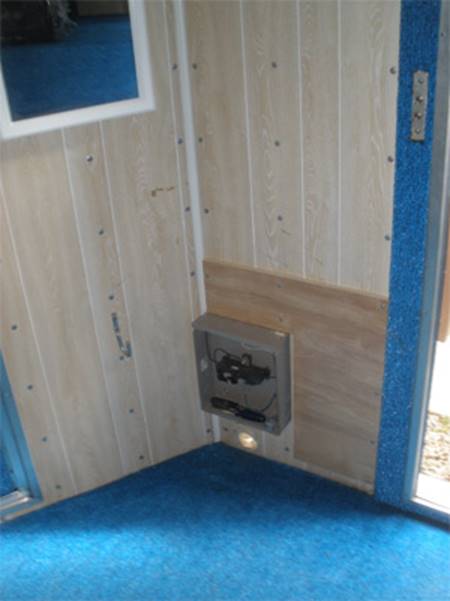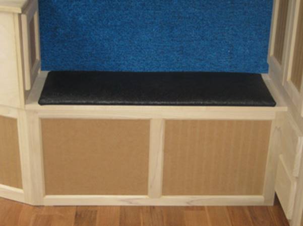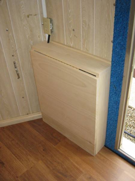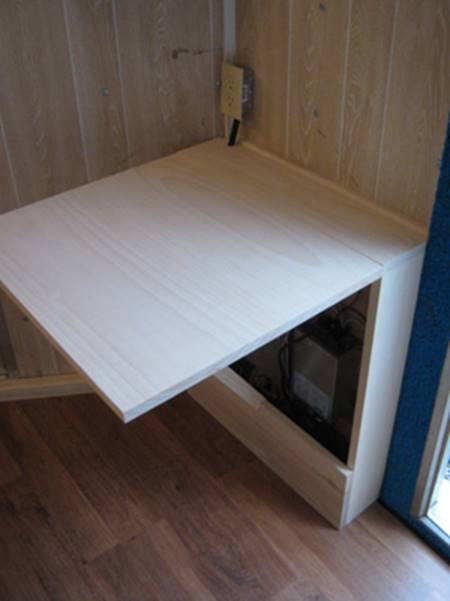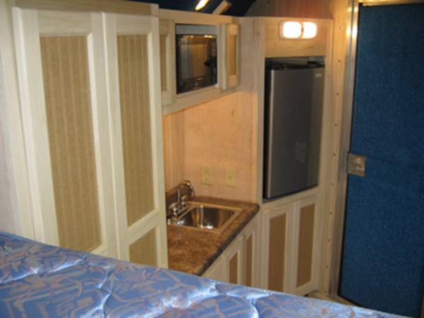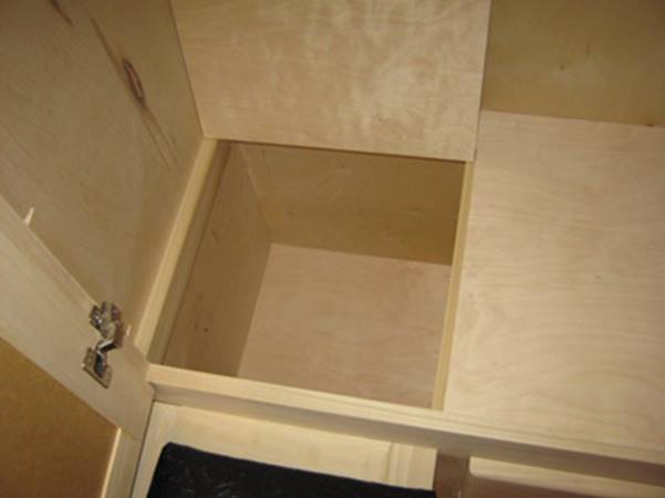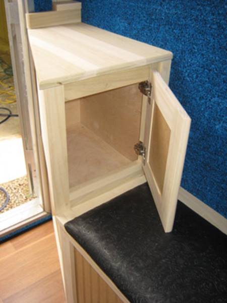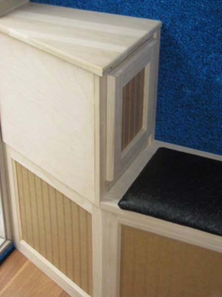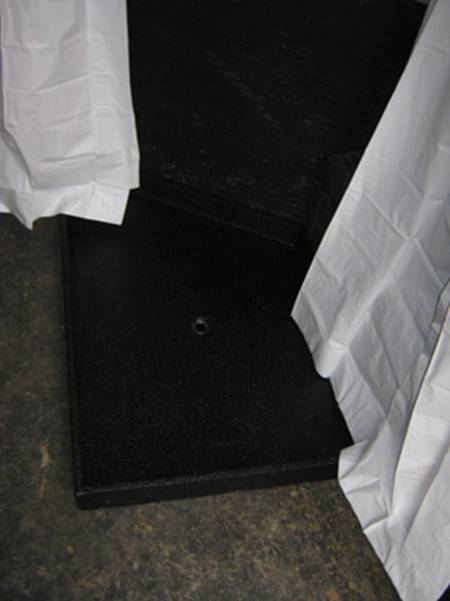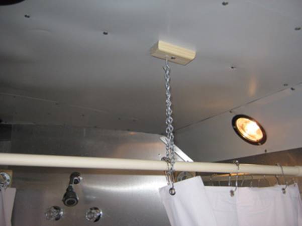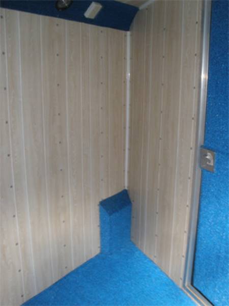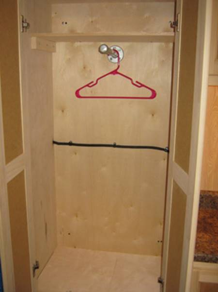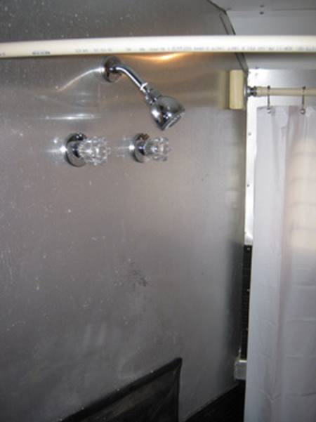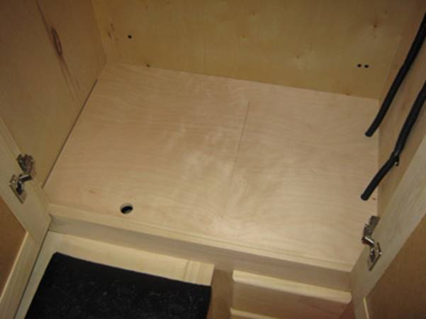 plywood and covered with rubber truck bed liner material. Shower pan is easily